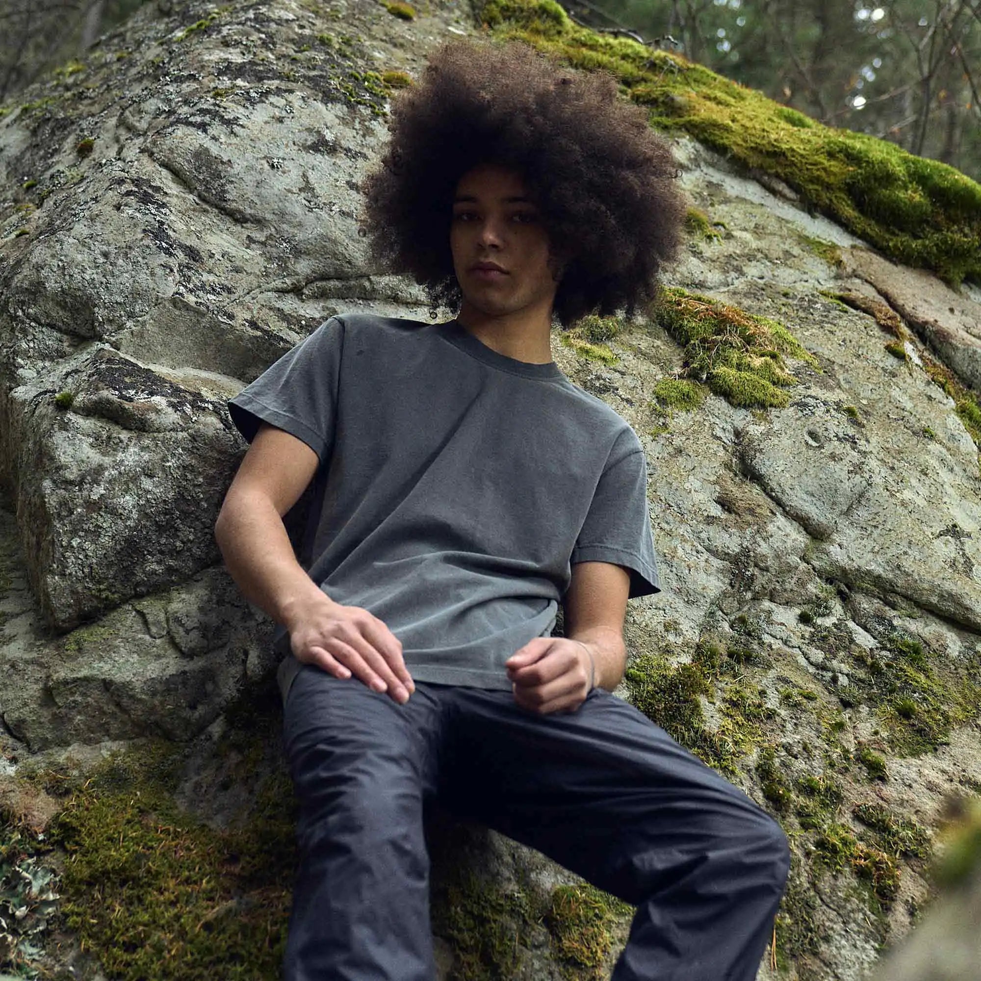 The Tenaga Tee is made from a midweight (230gsm / 8oz) 100% USA grown cotton jersey. The relaxed fit has a slightly longer hem. The shirt is pigment-dyed for a softer feel and subtle color-shade saturations the enzyme wash prevents shrinkage.