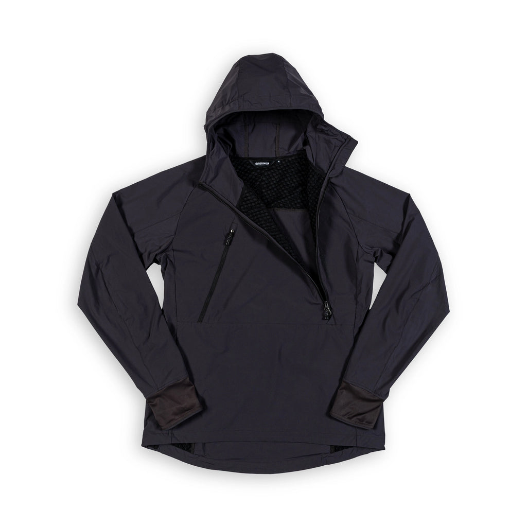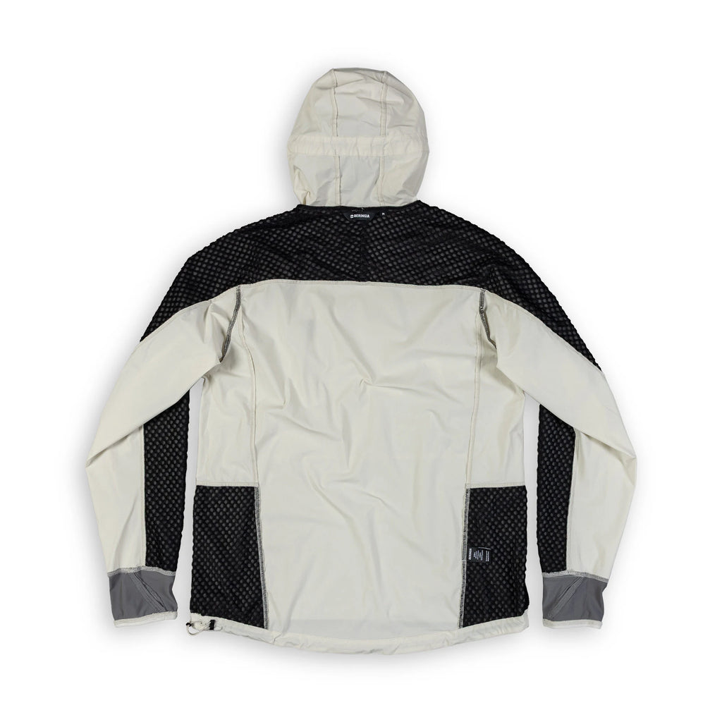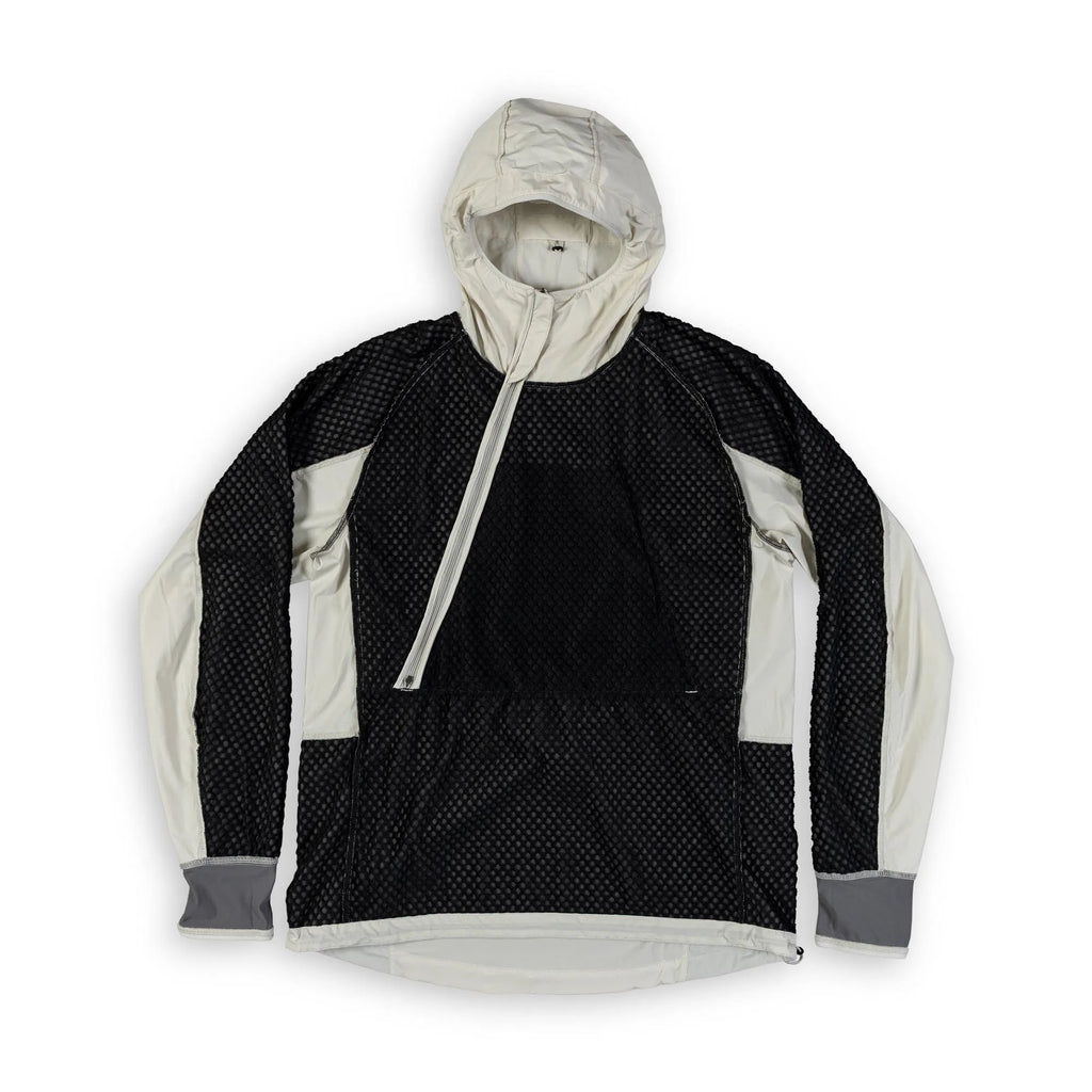 Re-defining the traditional training top of yore with the most advanced Japanese fabrics. Asymmetrical 2-way zipper for ventilation, soft nylon stretch shell with body mapped Octa grid insulation in “chill zones” offering dynamic heat insulation only where needed. Packs into its own pocket. Designed originally for mountain running where lightweight, breathability and mobility are paramount.