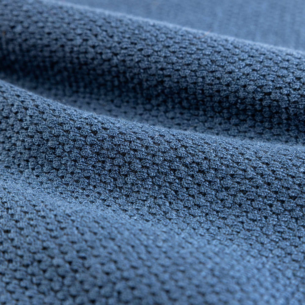 By combining different knits into one single fabric we can move excess heat and humidity into the air (active) and trap more dry air between the layers (passive). The outer waffle is resilient to the point of feeling almost spongy, providing an unheard-of 2:1 ratio of stretchable comfort, with a bold but elegant cross-hatched waffle texture.
