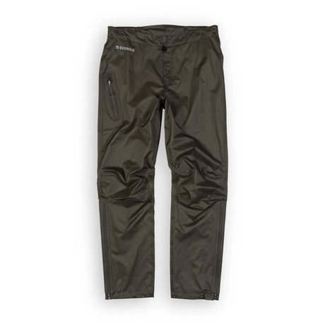 The pants have waterproof zippers on the cuffs for easier on and off on the move, an elastic drawstring waist pull, and pulls on the cuffs. Hanger loop on the back of the waist, zipper pocket on right thigh.