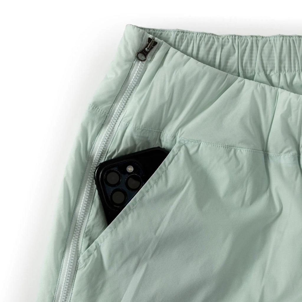 A lightweight mid-layer or stand-alone short built for movement in variable conditions. The Lightstream Short combines warmth with dynamic stretch, using a Japanese 15d shell and 80% recycled Vivo Extreme Eco insulation. Full-length side zips allow for momentary transitions from uphill climbs to steep descents.